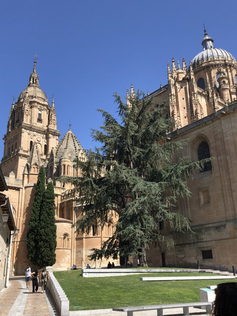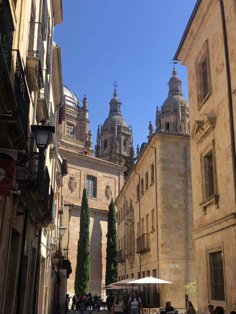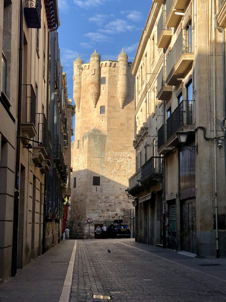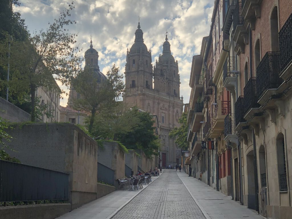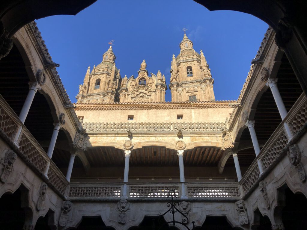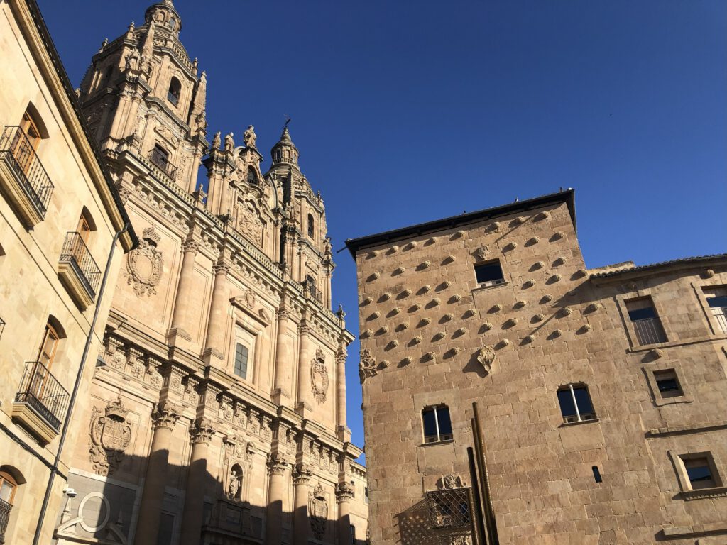 Estos dos edificios juntos forman una de las postales más famosas de Salamanca: la piedra dorada, el contraste de estilos y la sensación de estar rodeado de siglos de historia.