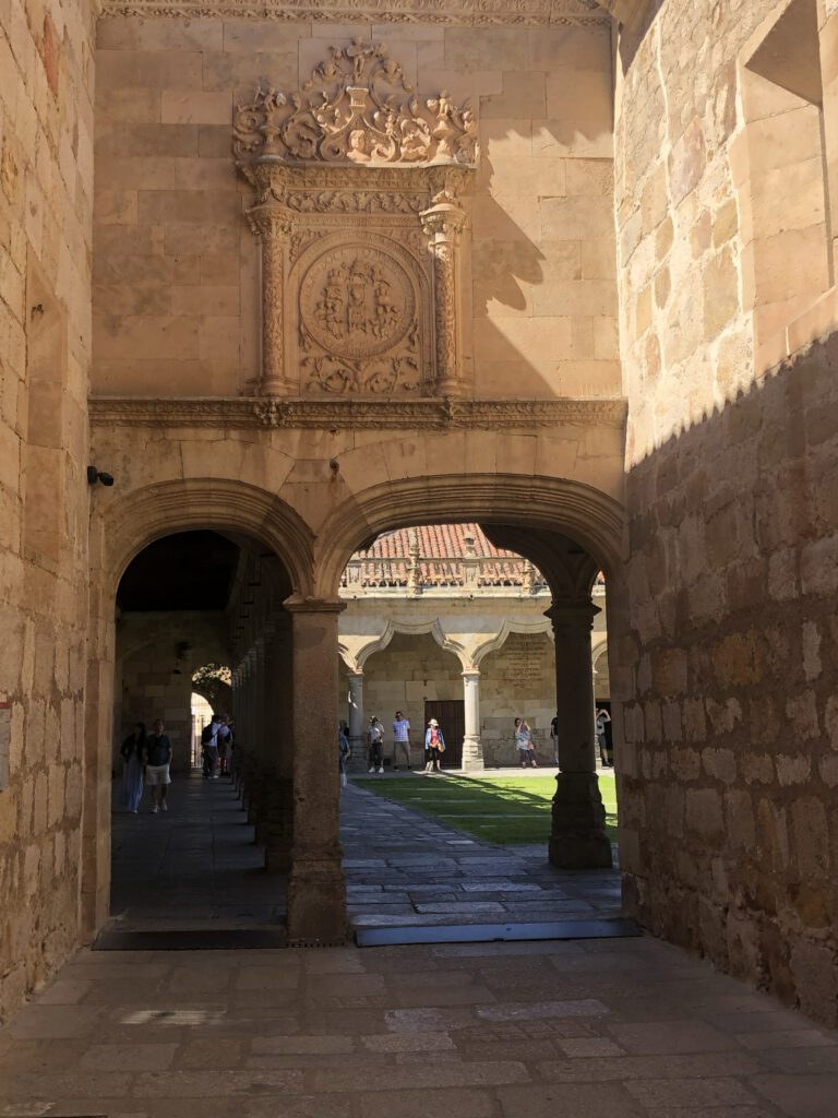 En sus muros veréis grafitis medievales rojos por todas partes. Son vítores, y los pintaban los estudiantes que terminaban la universidad para celebrar su éxito. Para ello utilizaban sangre de toro, pimentón y aceite de oliva.